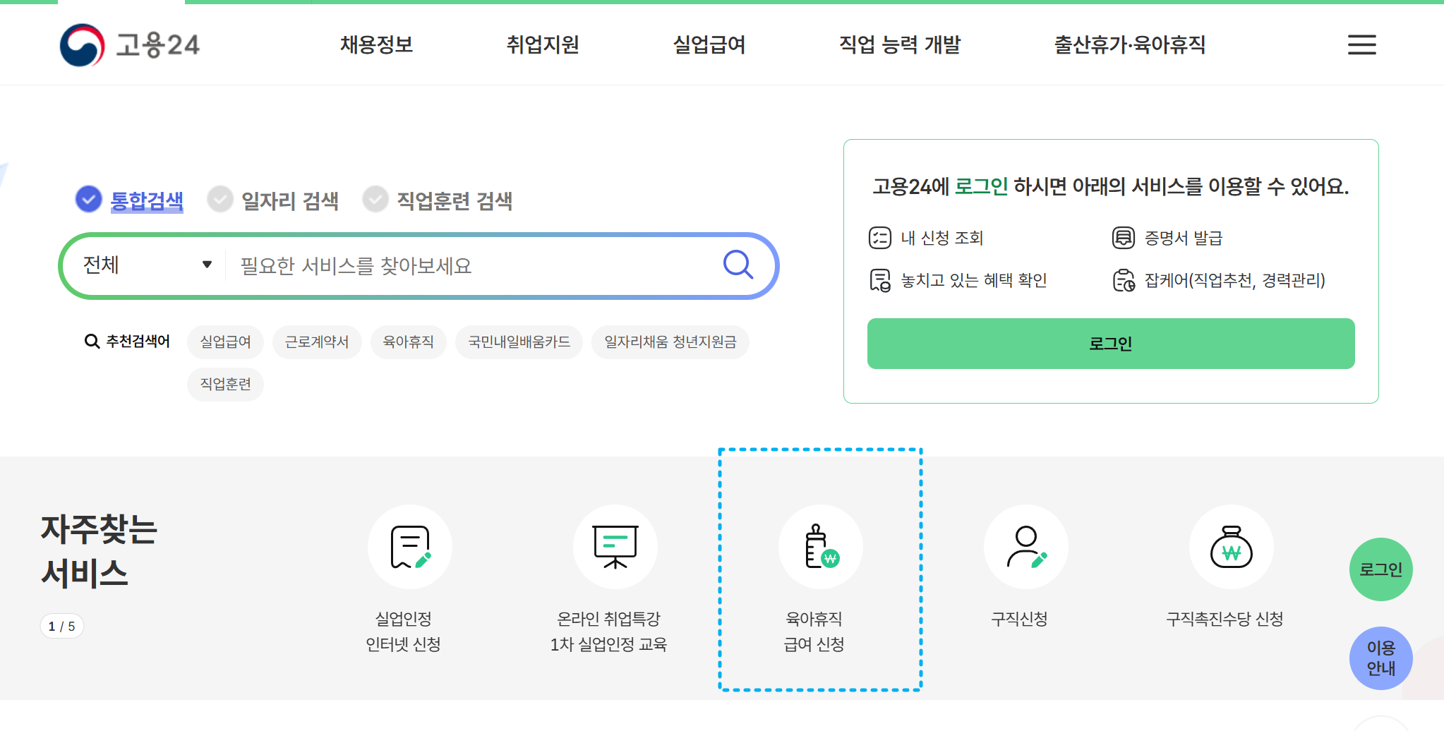고용보험 홈페이지: 로그인 후 ‘모성보호 > 육아휴직 신청’ 메뉴를 통해 간편하게 신청.