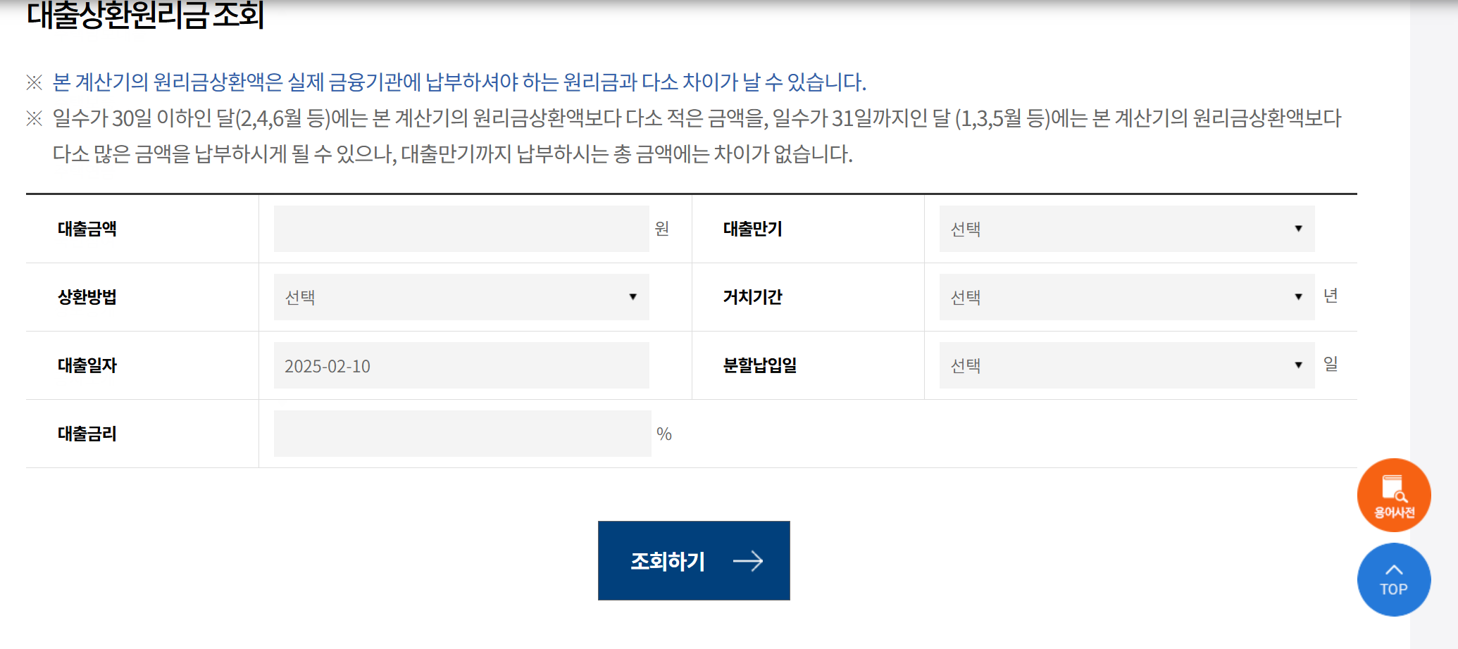 - 대출 금액, 금리, 상환 기간을 입력