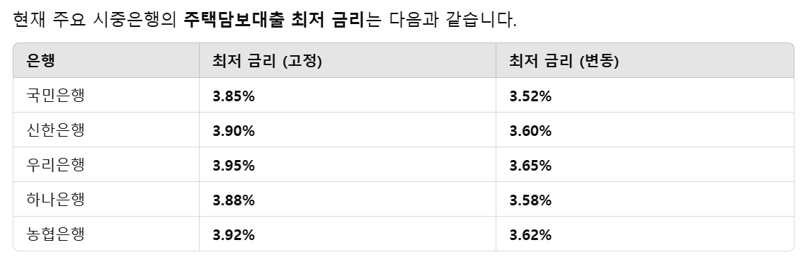 1. 주요 시중은행 주택담보대출 금리 비교