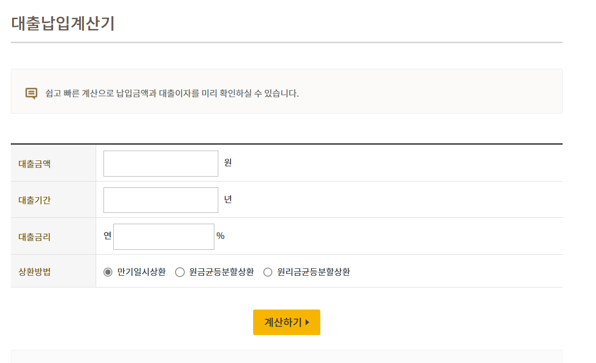 - 대출 금액, 금리, 상환 기간을 입력