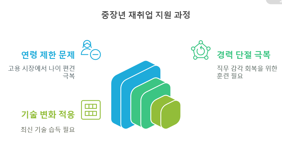 이러한 문제를 해결하기 위해 정부가 나서서 실무 교육과 재취업 기회를 동시에 제공하는 것이 바로 중장년 경력지원제의 핵심입니다.
