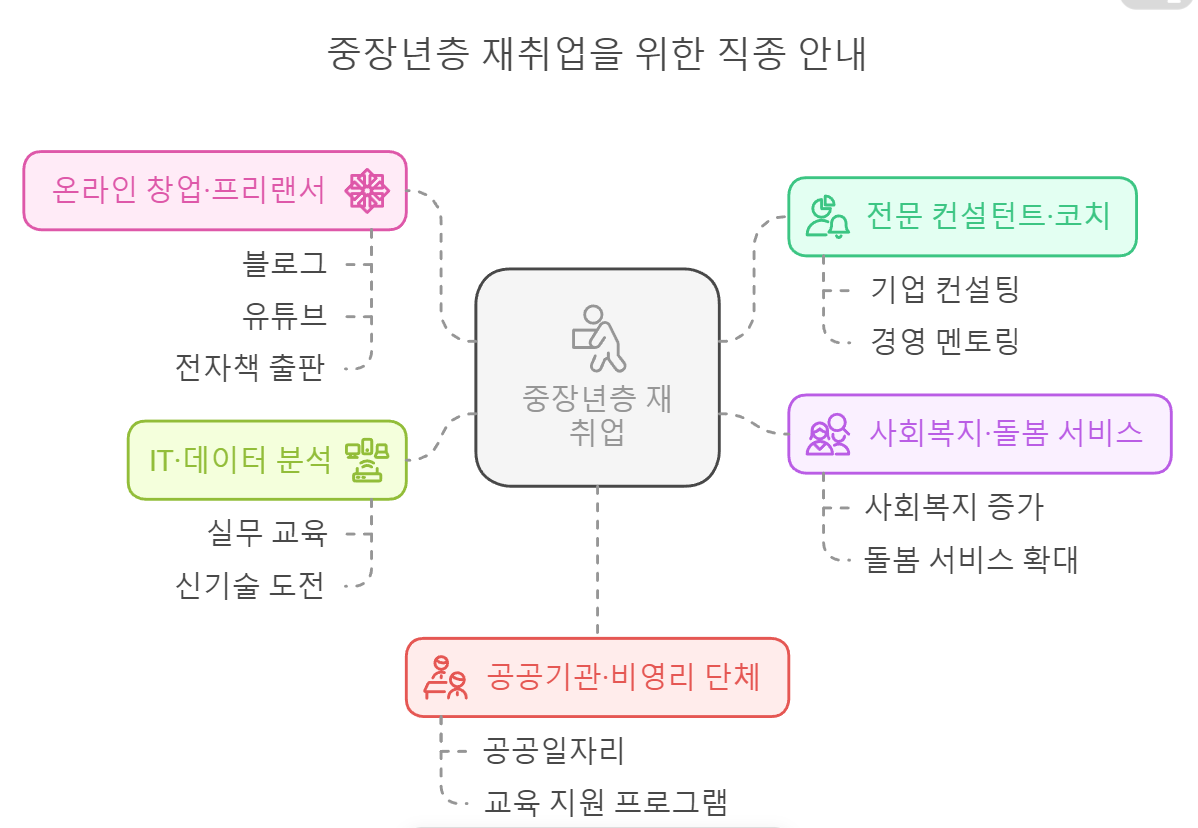 그래서 정부가 2025년 ‘중장년 경력지원제’를 도입하여, 중장년층이 다시 경제활동에 뛰어들 수 있도록 돕는 프로그램을 준비했습니다. 경험과 노하우를 살리면서 새로운 직업으로 전환할 수 있는 기회, 지금부터 알아보겠습니다.